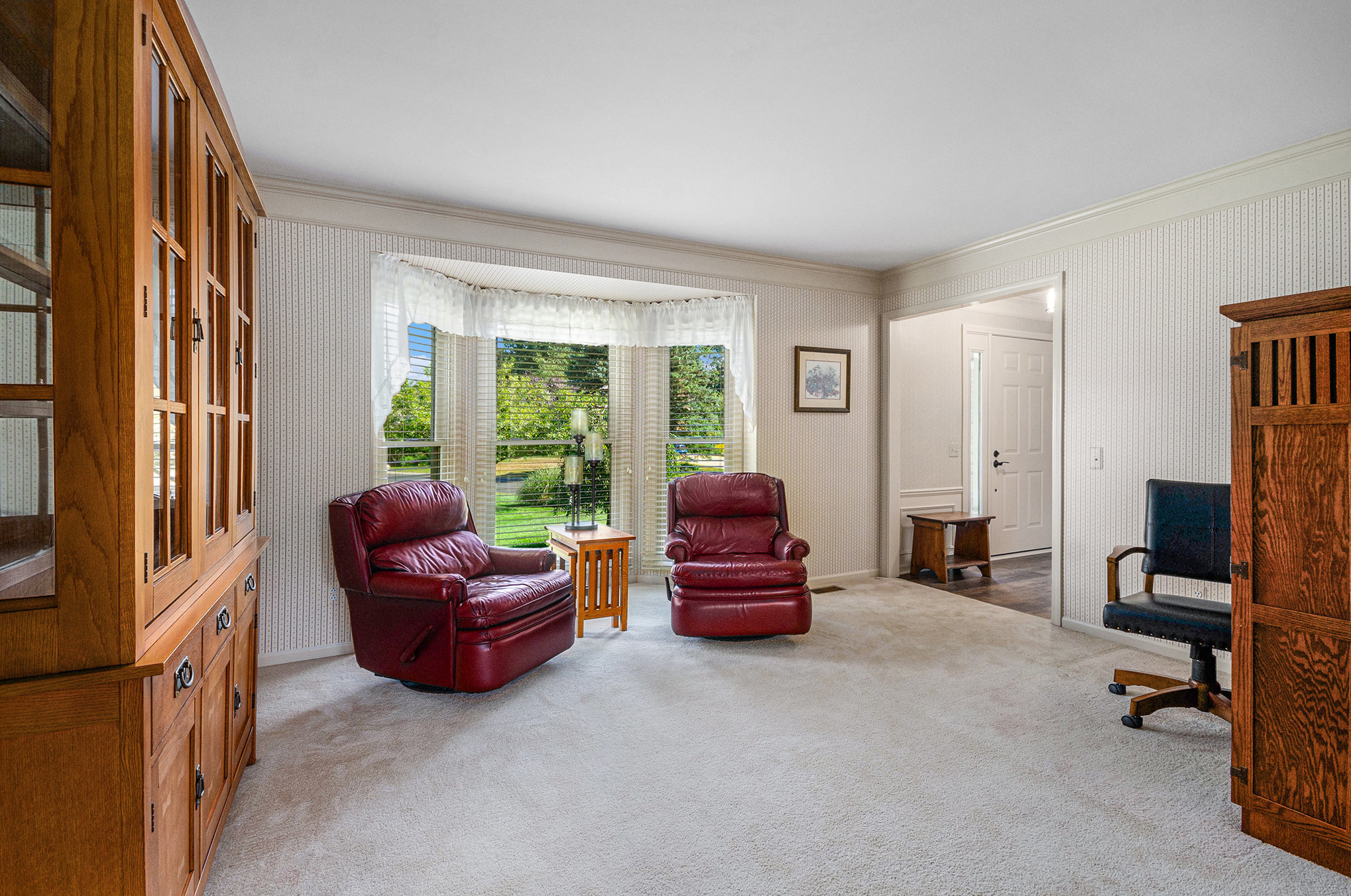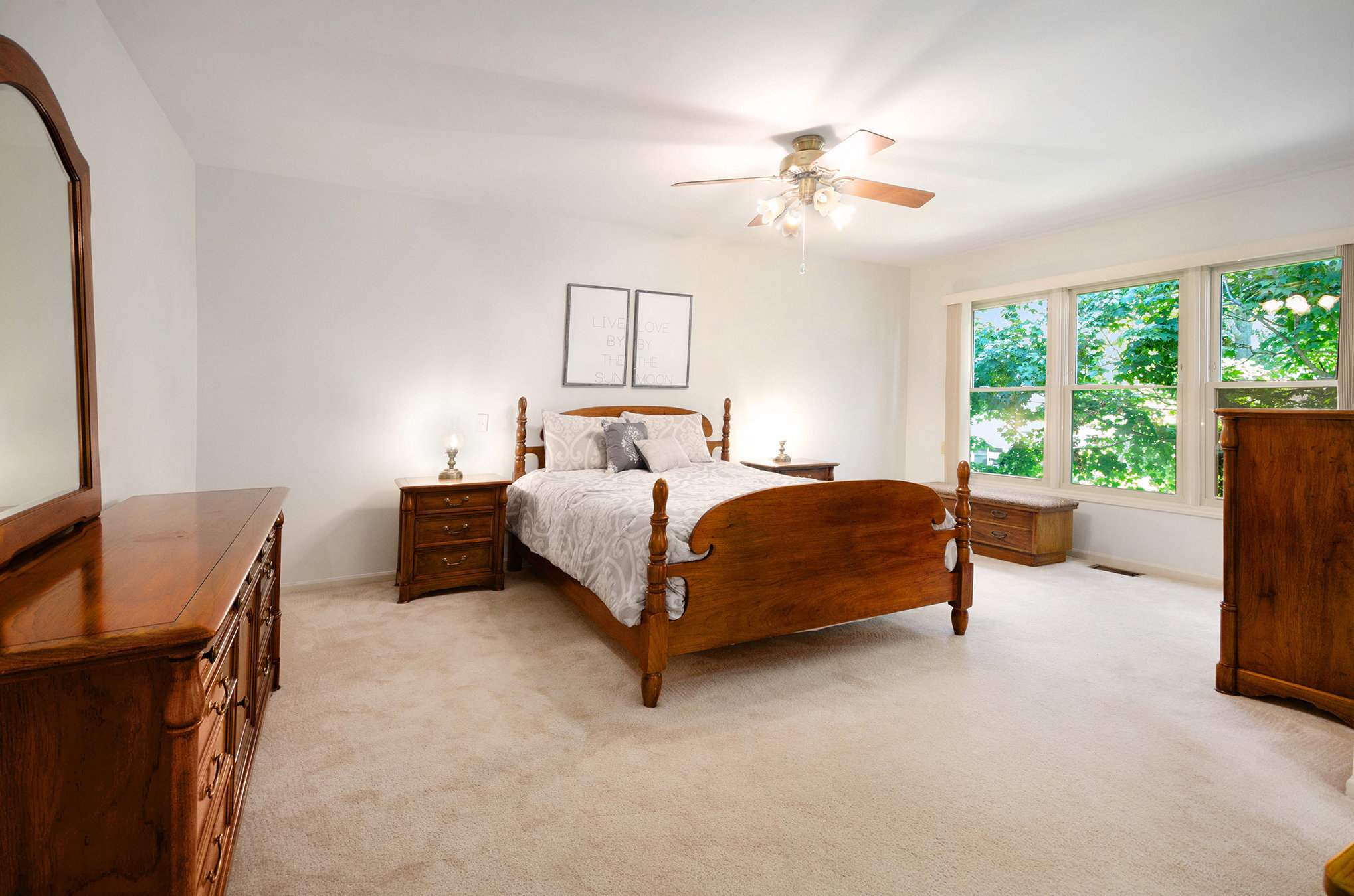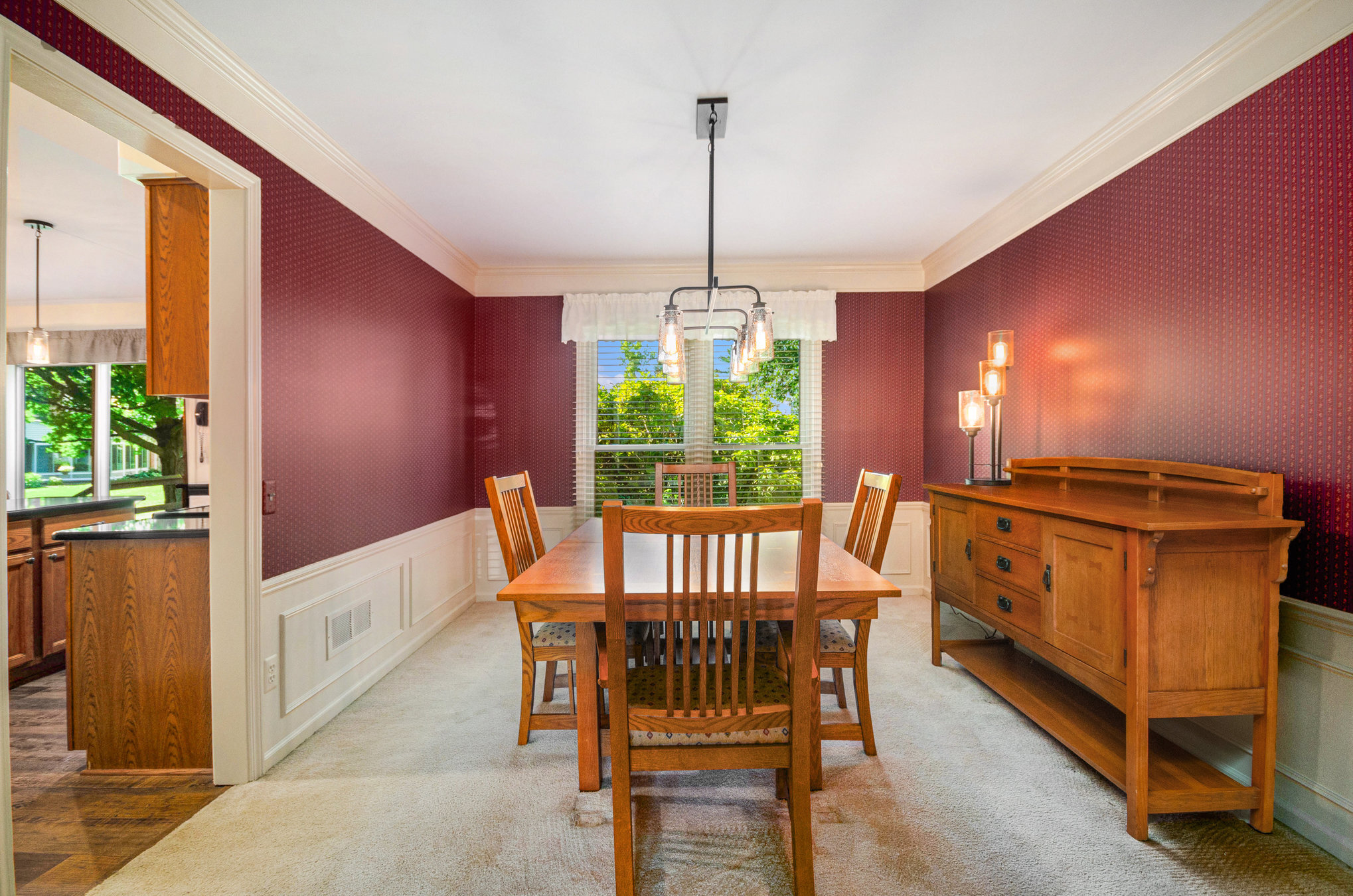 The entry opens to a spacious layout, featuring a living room with a bay window that allows in loads of natural sunlight. The dining room features a new chandelier fixture and custom wainscoting, and the beautiful shaker dining set can stay! The generously sized kitchen offers ample cabinet and granite counter space, a prep island, new modern light fixtures, beautiful luxury plank flooring, and a spacious dining area. A door wall leads to the spacious deck and a beautifully landscaped backyard. The large family room features a cozy gas fireplace, views of the ample backyard, and plenty of furniture placement options.