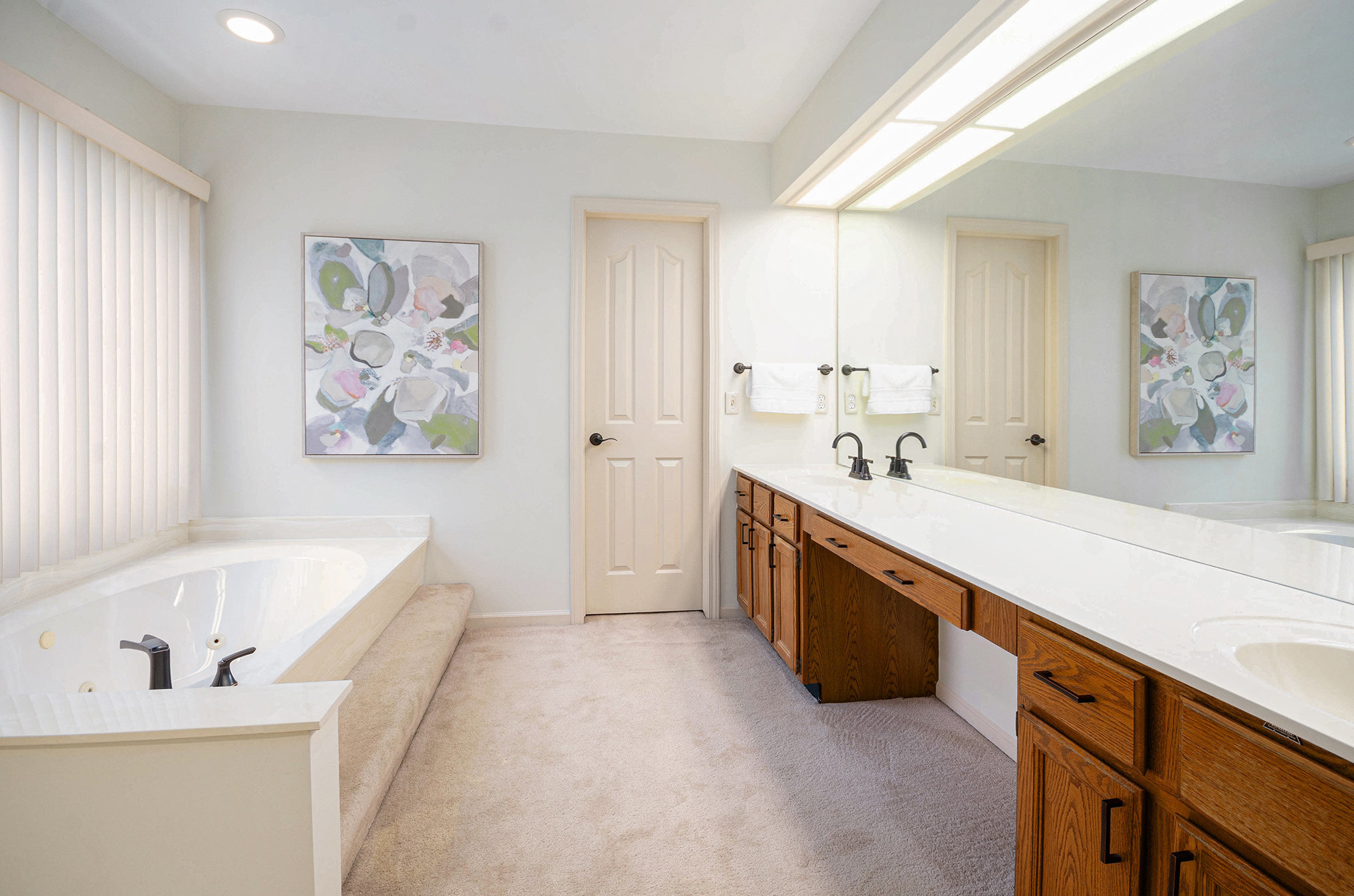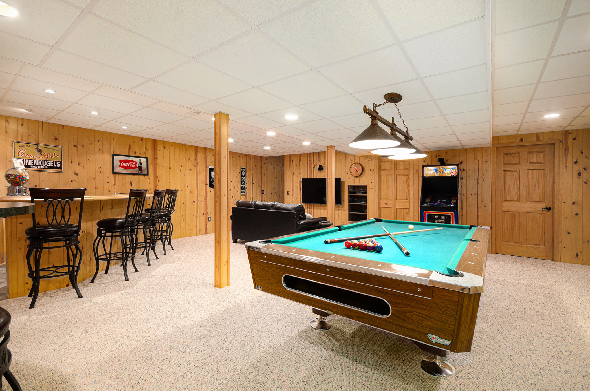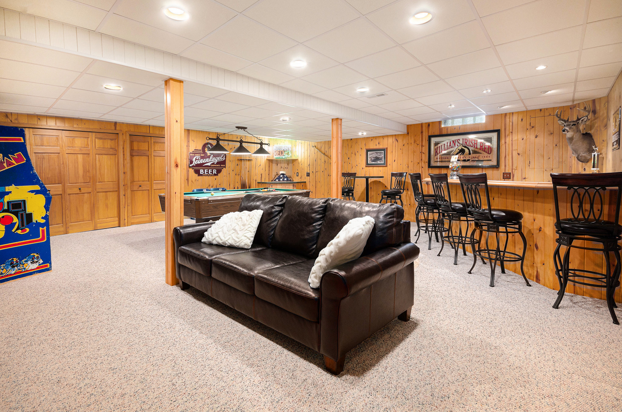 Upstairs, the space hosts four ample bedrooms with spacious closets, a large, updated full bath featuring new ceramic flooring, and a generous primary suite with a luxurious private bath, an updated tiled shower, a whirlpool tub, and a fabulous walk-in closet. The professionally finished basement offers something for everyone with a gaming area, a large TV viewing area for movie nights, a party-sized bar with sink and cabinets, and plenty of storage!