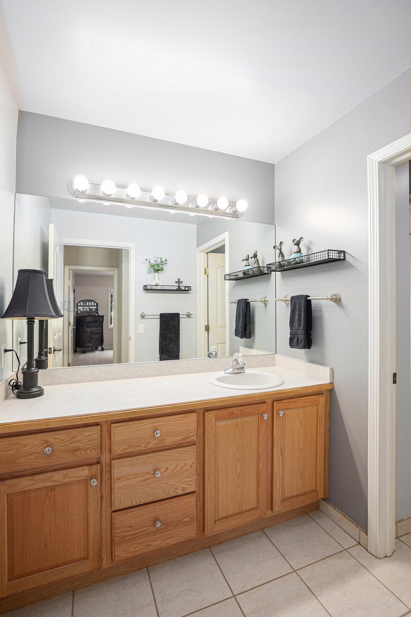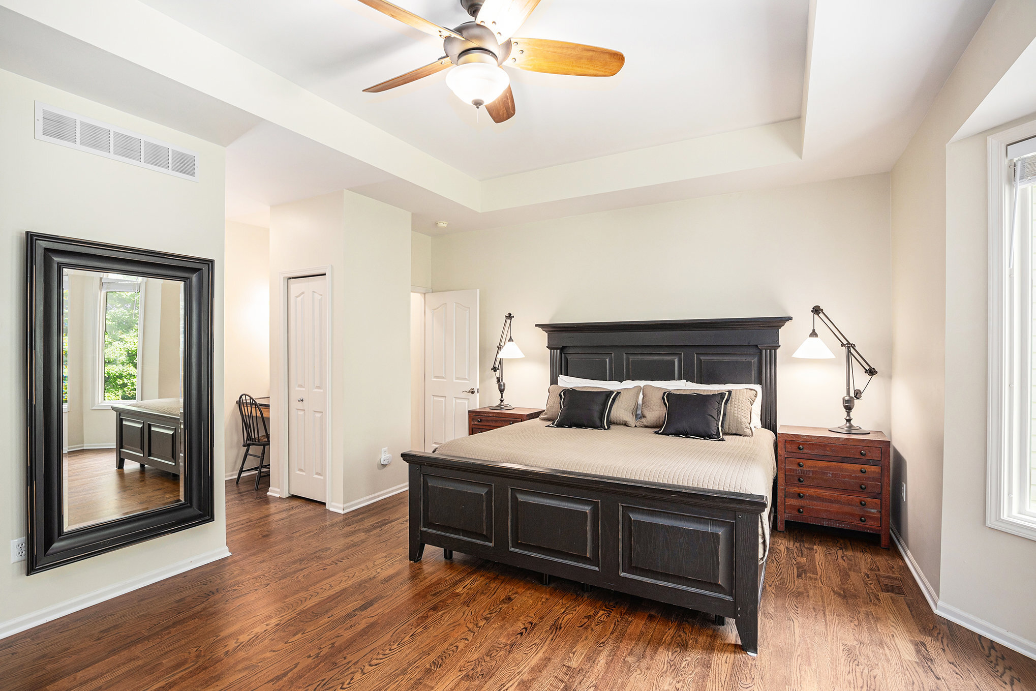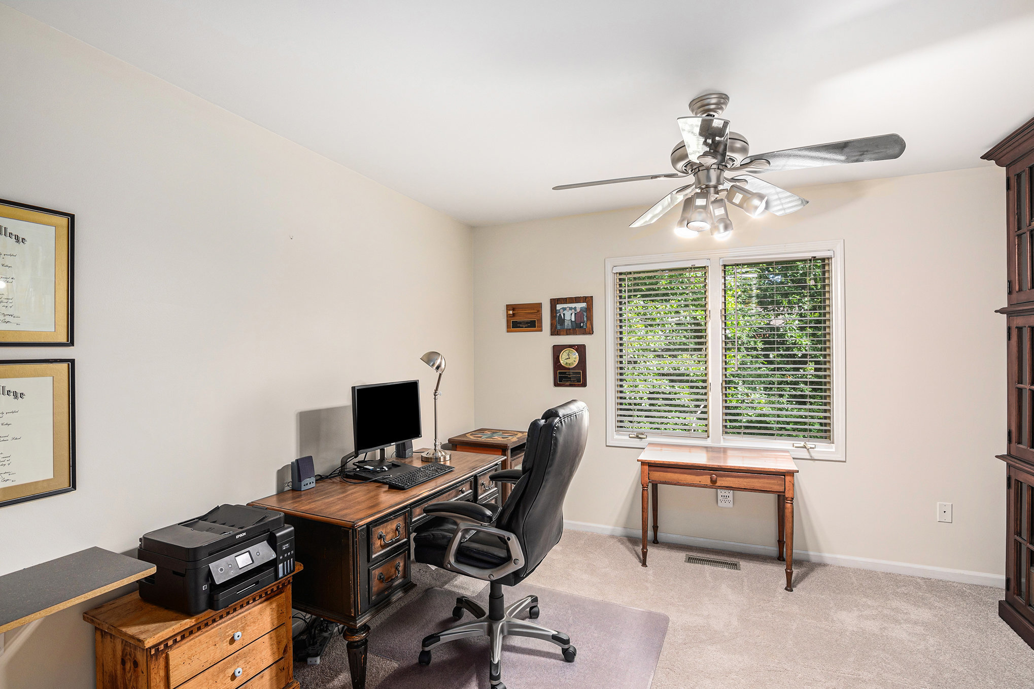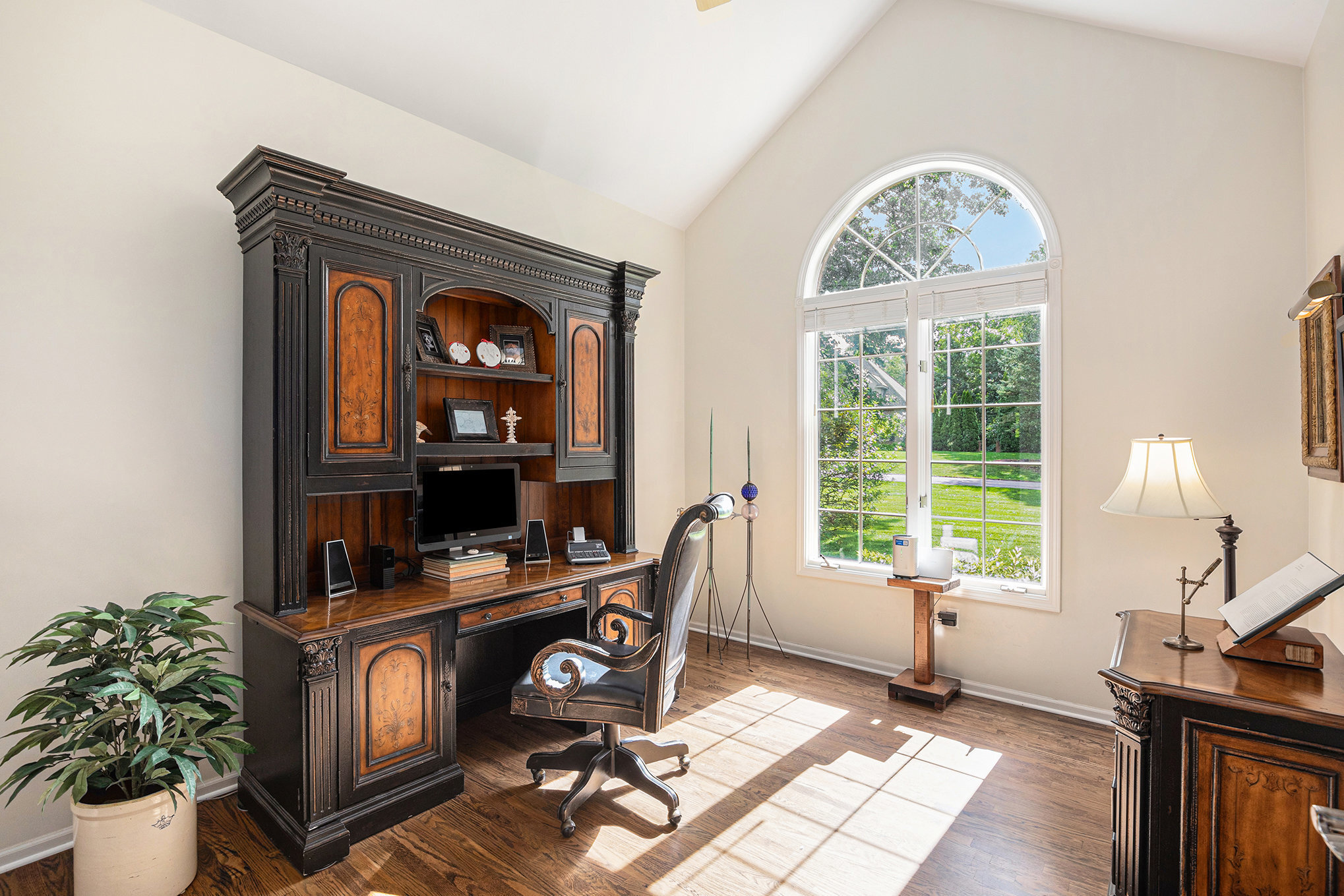 Upstairs hosts the three additional bedrooms, including a second en-suite with full bath, two generous bedrooms (one currently used as a home office), and a spacious hall bath, all with ample closet space.