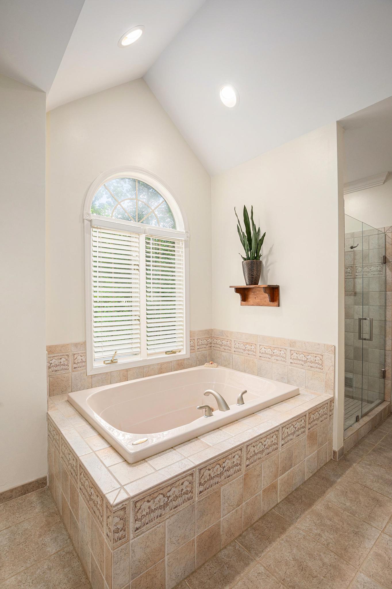 The convenient first-floor study easily flexes as a home office or den. The first-floor primary en suite is a luxurious retreat, offering tranquil backyard views, three sizable closets, a dressing/vanity area, and a spa-like bath, complete with a soaking tub and a separate tiled shower.