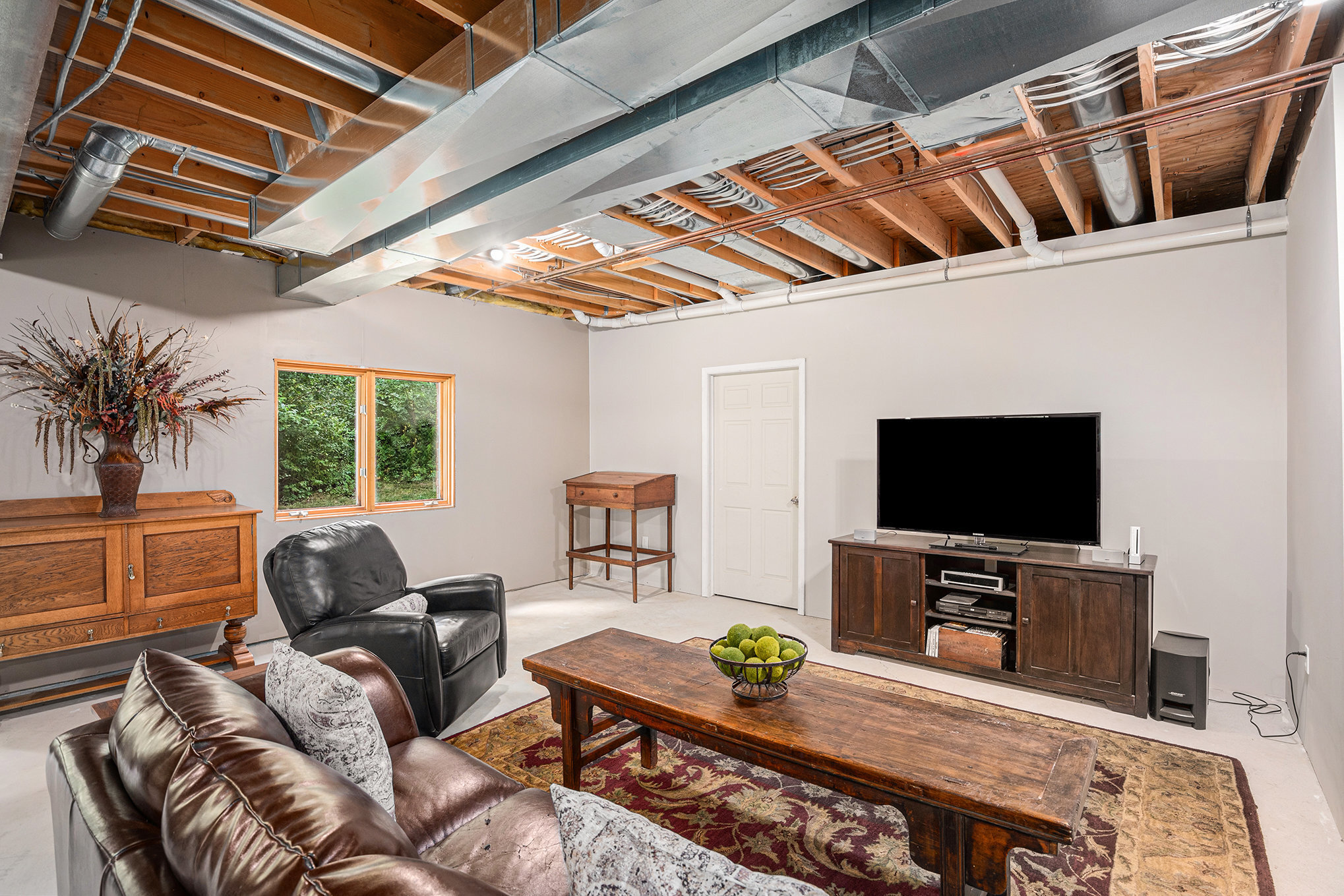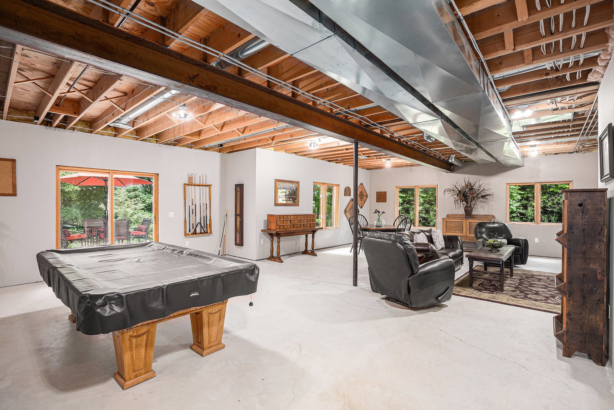 The partially finished walkout lower level offers additional living space, including a large recreation room with a door wall leading to a spacious patio overlooking the woods, convenient access to the mechanicals, and easy potential for further completion.